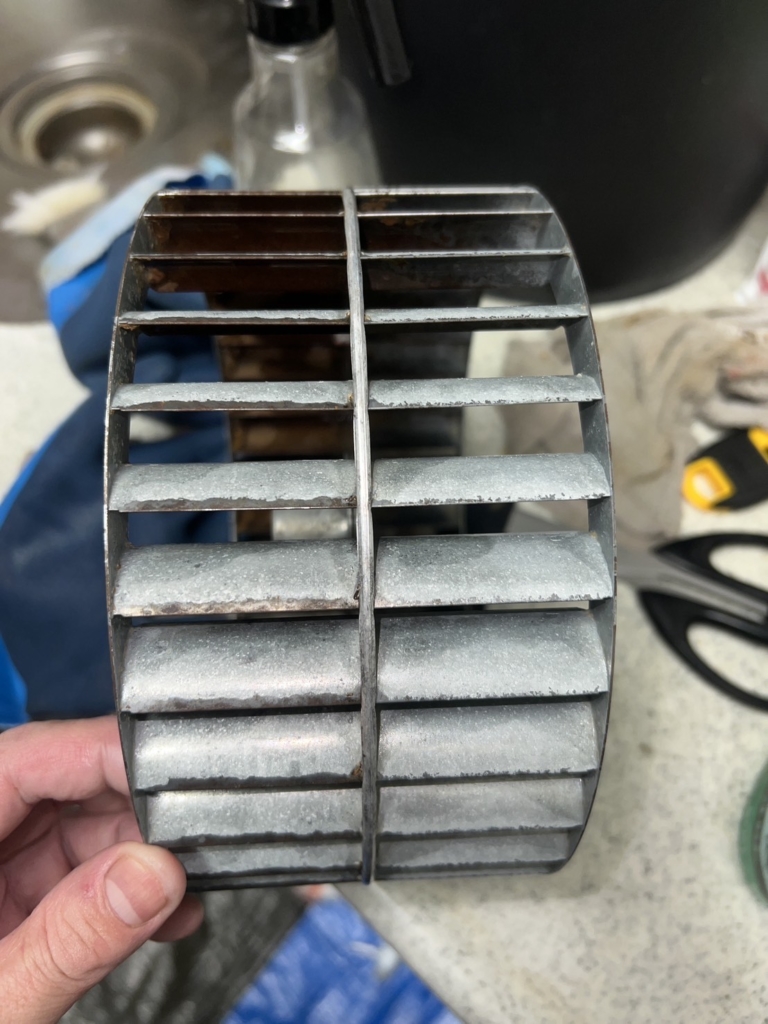 長年の使用で油汚れが蓄積し、ファン内部までベタついている状態でしたが、