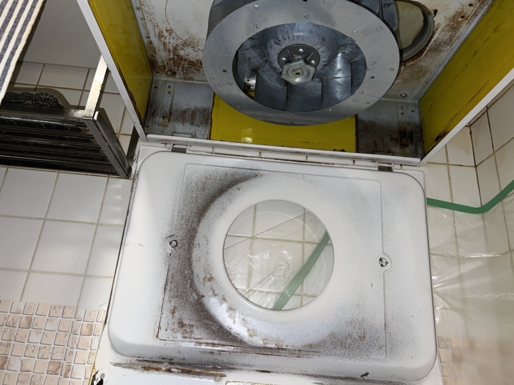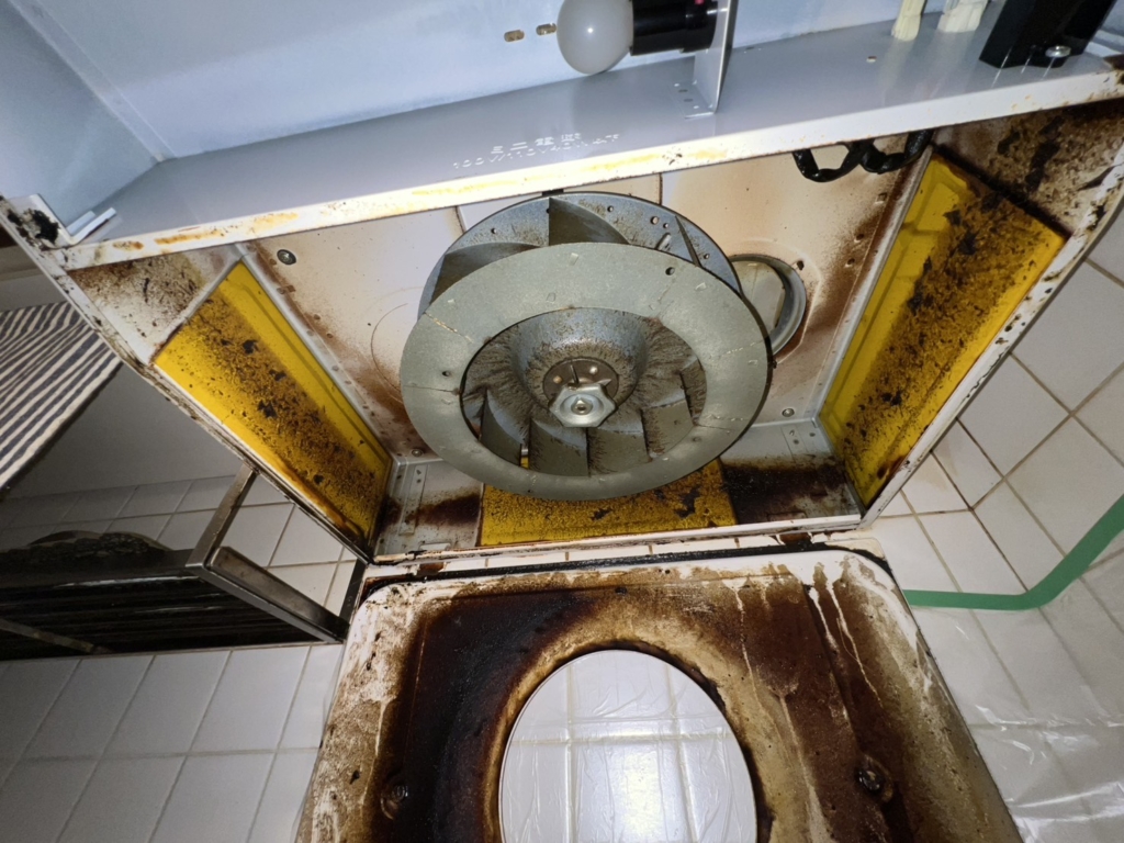長年の油汚れを確実に除去できるのがプロの技術です。