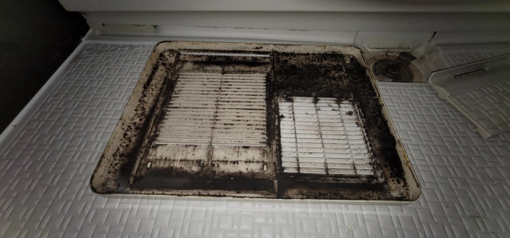 そこで確認してみると、内部には長年の油汚れがびっしり。フィルターもファンも汚れが固まり、空気の流れが滞っている状態でした。